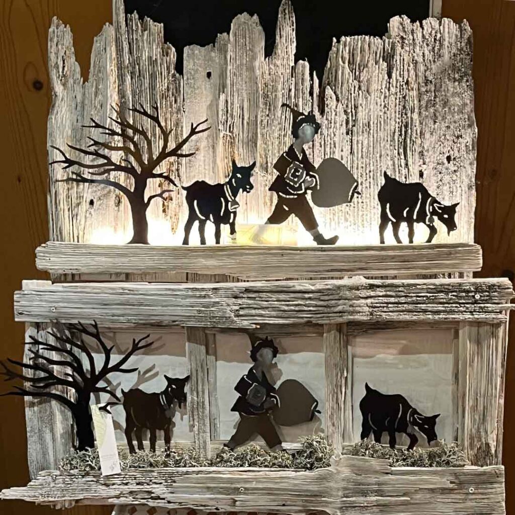 Geschnitzte Kühe, Schafe und allerlei Selbstgemachtes.