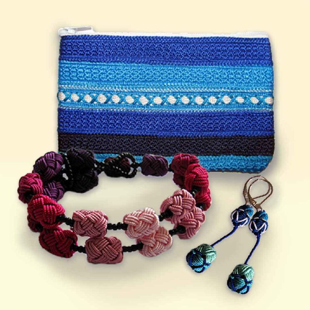 Handgemachte Fairtrade Artikel aus Marokko. Etuis aus Textilbändern und Schmuck aus geknüpften Perlen, usw.