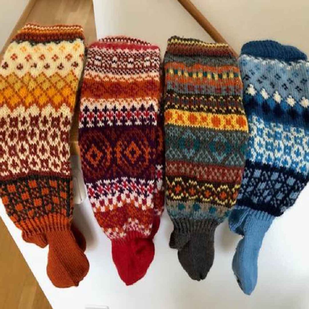 Gestrickte Kuscheltiere aus Plüschwolle, Wollsocken und Silberschmuck mit Steinen und Perlen – alles selbst gemacht.